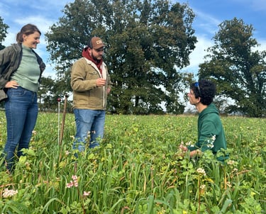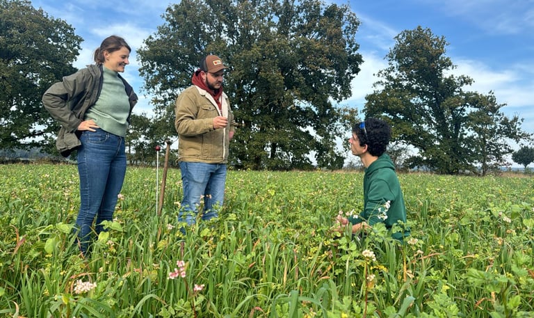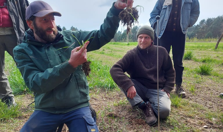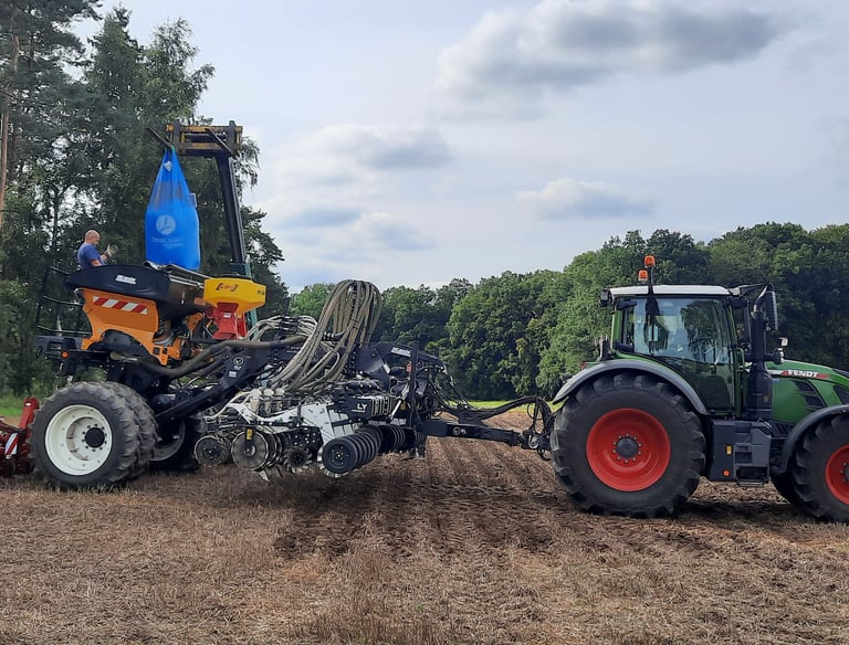 Wir helfen bei der Einführung von semi-permanenter Zwischenfrucht, Direktsaat, bei der Optimierung des Pflanzenmikrobium, Agroforst und vielem mehr!